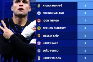 体育资讯3月6日讯 德国转会市场盘点了本赛季五大联赛打进制胜球球员情况,劳塔罗以9球居首,姆巴佩和哈兰德以8球并列次席。