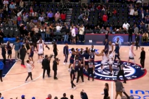 GIF-快船森林狼比赛结束 马瑟林(佩杜拉生涯首分)和纳兹·里德因比赛用球的归属发生接触 险酿冲突