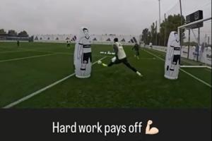 赛后库尔图瓦在社媒上分享了平时训练的视频,表示:努力工作终有回报,并@皇马门将教练路易斯·洛佩斯。